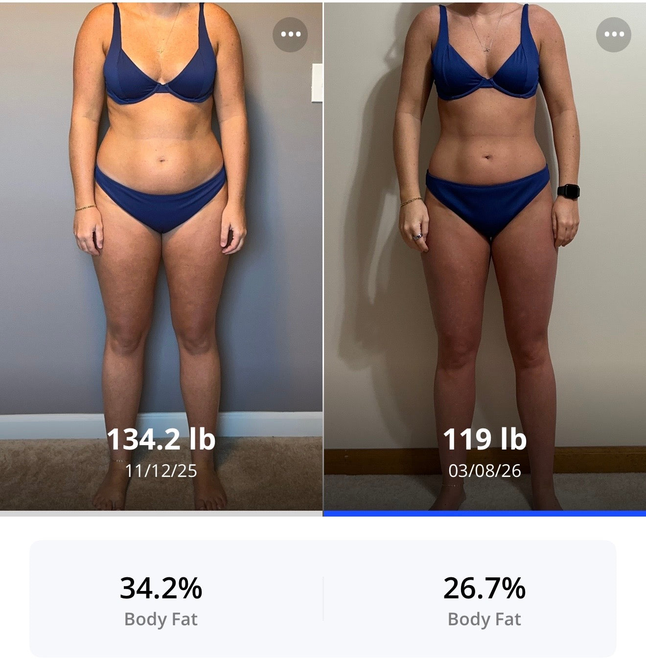 “I have to thank you as I feel like this is the first thanksgiving/holiday season I haven’t gained weight! Love the comparison pictures, always so amazed!!”